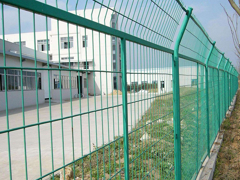 框架护栏网的应用一般有这样几种:扁铁框架、圆管框架、角铁框架和方管框架。铁路上应用的框架护栏网采用Q235方管,规格30*50*2mm,网孔75*150mm,线径4.0mm,顶部折弯30度,折弯垂直高度30cm,防护高度1.8米。为了增强产品的抗腐蚀能力一般都要进行表面处理,表面钢丝镀锌,上锌量270克/平方米,然后再进行热浸塑处理,要求涂层均匀光滑,颜色一致。做到四无:无流柱,无滴瘤,无粉泡,无漏铁。铁路护栏网的颜色一般都是绿色的,以墨绿色为主,有时候也可以是草绿色。